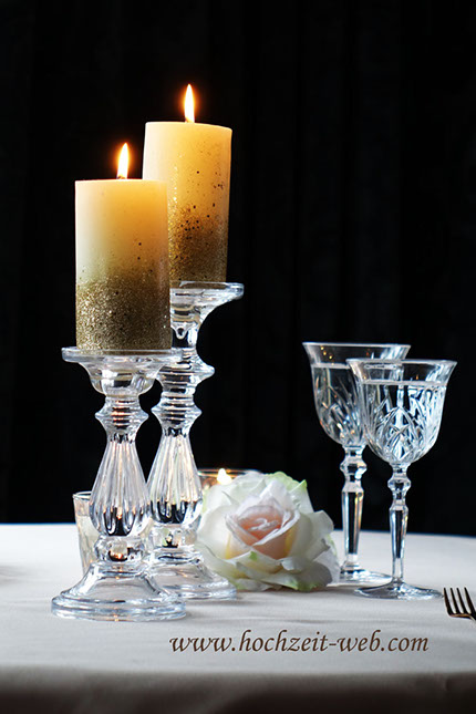 Für die Hochzeitsdekoration sind Kerzenständer unabdingbar. Kerzen werden für jeden festlichen Anlass verwendet, denn Sie verleihen der Deko einen Hauch von Romantik. Bei Ihrer Hochzeitsdekoration sollten Kerzen also auf keinen Fall fehlen.