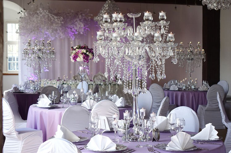 -Kristall Kerzenständer: Gewaltig, pompös, verspielt, luxuriös und extravagant, besser lassen sich diese Kerzenständer nicht beschreiben. Sie sind auf jeden Fall eine gute Wahl für die Hochzeitspaare, die eine unvergessliche Märchenhochzeit planen.