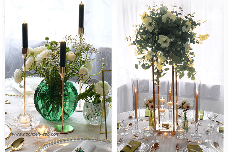 Für die Hochzeitsdekoration sind Kerzenständer unabdingbar. Kerzen werden für jeden festlichen Anlass verwendet, denn Sie verleihen der Deko einen Hauch von Romantik. Bei Ihrer Hochzeitsdekoration sollten Kerzen also auf keinen Fall fehlen.
