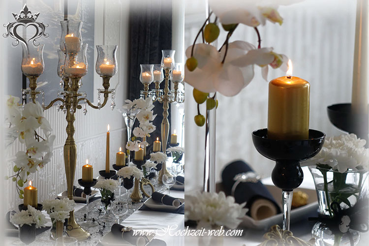 -Schwarz: Auffällige Kerzenständer in Schwarz im typischen Rokoko-Stil sorgen für einen unvergleichlichen Hingucker auf jeder Hochzeitstafel.