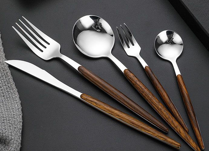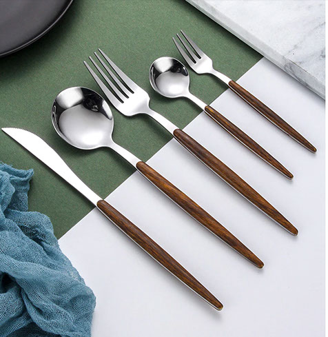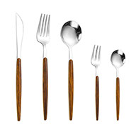 Artikel: Besteck in Silber mit Holz Optik