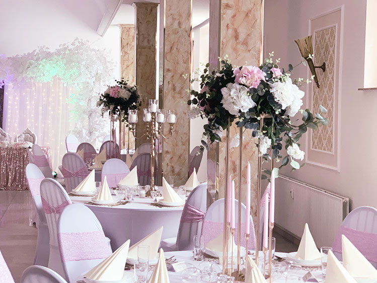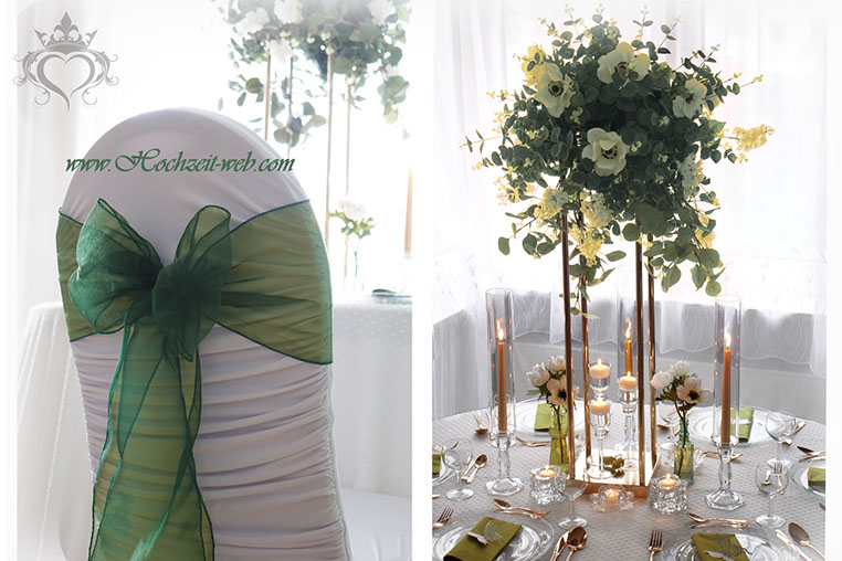 Jede Hochzeit ist immer ein besonderes eigenartiges Ereignis. Wir bieten Ihnen verschiedene Varianten von Tischdekoration, von elegant bis zur extravagant, von schlicht und edel bis königlich pompös. Sie haben auch die Möglichkeit die Tischdekoration so wie Glasvasen oder Porzellan Vasen zu mieten. Allerdings können wir die Vasen nicht mit der Post zusenden, die müssen abgeholt werden. Außer Vasen verleihen wir auch die Kerzenständer, Kerzenleuchter und weiße Stuhlhusse. Die Kerzenständer und Stuhlhusse können wir gerne mit der Post senden Rufen Sie uns an!