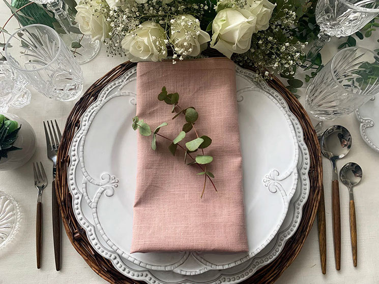 Wir versenden die Servietten deutschlandweit, sodass Sie auch bei Ihrer Hochzeit den gewünschten Stil und den guten Geschmack genießen können. Mit unseren Servietten verleihen Sie Ihrem Tisch eine exklusive Eleganz und werden dabei noch Budget schonender sein, da Sie die Servietten mieten können. Probieren Sie es aus und mieten Sie unsere Leinen Servietten in Bielefeld! Altrosa Leinen Servietten mieten Stoffservietten aus 100 % Leinenstoff.