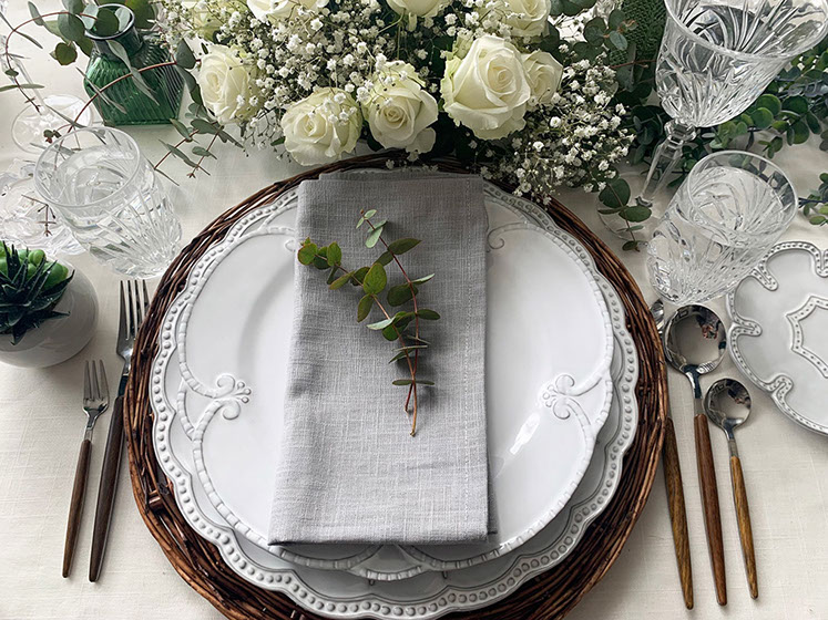 Unter einer stilvolle Hochzeit verstehen wir darum ein Fest, bei dem Tradition, Moderne und individuelle Charakter in harmonischem Einklang stehen. Denn eine Hochzeit ist ein traditioneller Anlass und ein gesellschaftliches Ritual, an das bestimmte Erwartungen geknüpft sind. Berücksichtigen Sie diese bei Ihren Vorbereitungen und verleihen Sie Ihrem Fest zugleich auf charmante Art und Weise eine ganz persönliche Note. Denn Ihre Hochzeit ist Ihr Tag, Sie allein entscheiden, wie dieser gestaltet werden soll. Bei uns Leinen Servietten mieten - Stoffservietten aus 100 % Leinen in verschiedenen Farben.