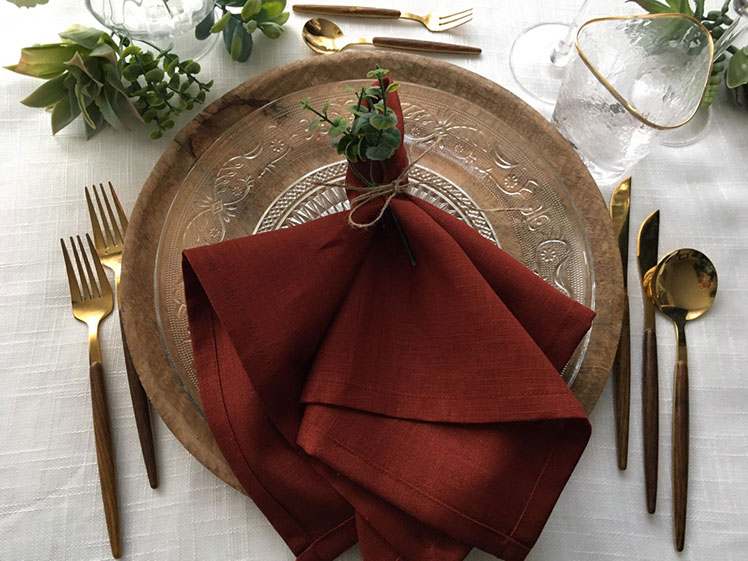 Wir versenden die Servietten deutschlandweit, sodass Sie auch bei Ihrer Hochzeit den gewünschten Stil und den guten Geschmack genießen können. Mit unseren Servietten verleihen Sie Ihrem Tisch eine exklusive Eleganz und werden dabei noch Budget schonender sein, da Sie die Servietten mieten können. Probieren Sie es aus und mieten Sie unsere Leinen Servietten in Bielefeld! Rost Leinen Servietten mieten Stoffservietten aus 100 % Leinenstoff.
