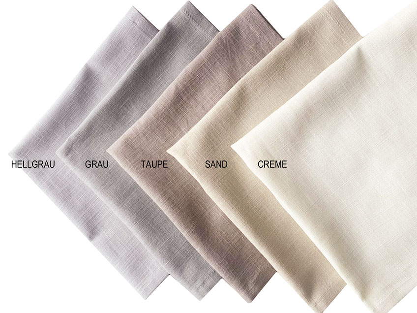 Wir versenden die Servietten deutschlandweit, sodass Sie auch bei Ihrer Hochzeit den gewünschten Stil und den guten Geschmack genießen können. Mit unseren Servietten verleihen Sie Ihrem Tisch eine exklusive Eleganz und werden dabei noch Budget schonender sein, da Sie die Servietten mieten können. Probieren Sie es aus und mieten Sie unsere Leinen Servietten in Bielefeld! Taupe Leinen Servietten mieten Stoffservietten 100 % Leinenstoff.