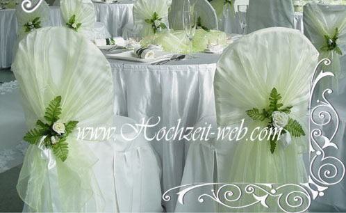- Der Anlass, in diesem Fall Ihre Hochzeit, ist ein ganz besonderes Ereignis. Ein Ereignis, dem durch eine romantische und stilvolle Dekoration entsprechend Gewicht verliehen werden sollte. Stuhlschleifen sind hierfür ein unverzichtbares Stilmittel.