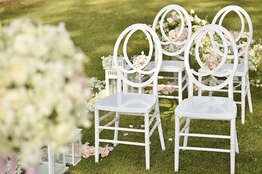 Phönix Chiavari Stühle sind eine gute Wahl, wenn eine freie Trauung im Garten geplant ist. Die formschönen und eleganten Stühle sorgen für die romantische Atmosphäre und versprechen zugleich einen einmaligen Sitzkomfort, der seinesgleichen sucht. Das moderne Design der Stühle fügt sich perfekt in jede Hochzeitsdekoration ein. Mieten Sie unsere Phönix Chiavari Stühle für eine unvergessliche Märchenhochzeit.