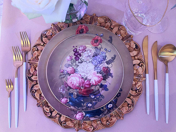 Tipp: Wer eine Provence-, Vintage- oder Boho-Hochzeit plant, der sollte sich unsere Glasplatzteller mit floralen Mustern und unsere rosafarbenen bzw. Schwarz-Rosa-Platzteller näher ansehen.