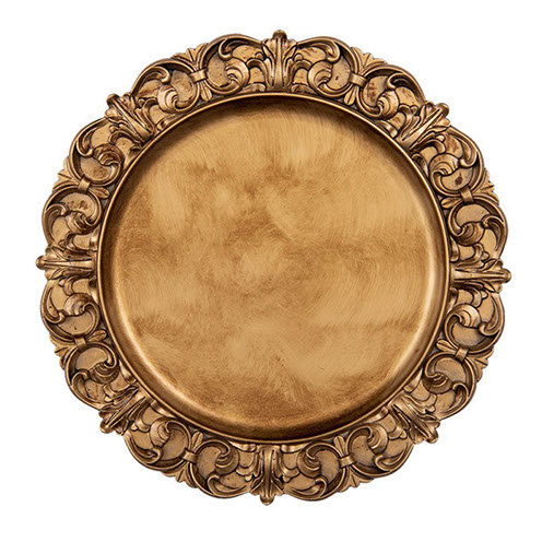 Der Platzteller auf der Hochzeitstafel dient nicht nur als Eyecatcher, sondern sorgt auch für eine optische Verbindung zwischen Tischdeko und Essgeschirr. Gleichzeitig hat der Teller natürlich einen praktischen Aspekt, jeder Hochzeitsgast weiß, welcher Platz für ihn vorgesehen ist. Sie sind auf der Suche nach „den Platztellern“, die perfekt zu Tafeldekoration ihrer Hochzeit passen sollen, werfen Sie einen Blick in unser facettenreiches Angebot. Wir führen Platzteller unterschiedlichster Stilrichtungen, die Sie zu attraktiven Preisen mieten können. Wir haben für jeden Bedarf die richtige Lösung. Bei uns können Sie ihre komplette Hochzeitsdeko zu attraktiven Preisen mieten. Von Chiavari -Stühlen über Kristall-Weingläser zum schwarzen Besteck, unser Hochzeitsdeko -Verleih lieft alle Accessoires, Dekoartikel und Mobiliar, dass Sie für die Gestaltung einer unvergesslichen freien Trauung benötigen. Werfen Sie einen Blick in unseren digitalen Katalog oder besuchen Sie gleich unseren Showroom, um ein Gefühl für unseren Stil und die Qualität unserer Waren zu bekommen. Mieten Sie unsere Platzteller für eine unvergessliche Märchenhochzeit. Platzteller mieten in Gold Antik Barock Style. Bei uns Platzteller mieten Gold Verleih Antik Barock in Bielefeld.