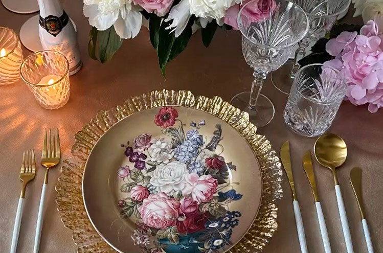 Tipp: Wer eine Provence-, Vintage- oder Boho-Hochzeit plant, der sollte sich unsere Glasplatzteller mit floralen Mustern und unsere rosafarbenen bzw. Schwarz-Rosa-Platzteller näher ansehen.