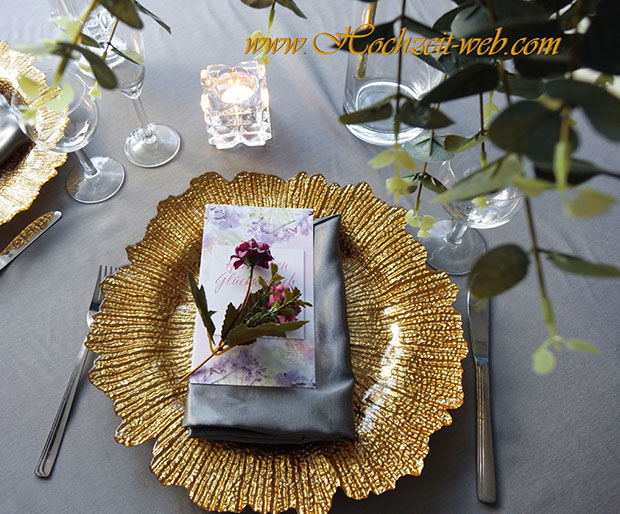 Wissenswert: Neben Platztellern können Sie bei uns auch das dazu passenden Essbesteck und die Gläser mieten, um ihre Hochzeitstafel optisch perfekt aufeinander abgestimmt zu gestalten.