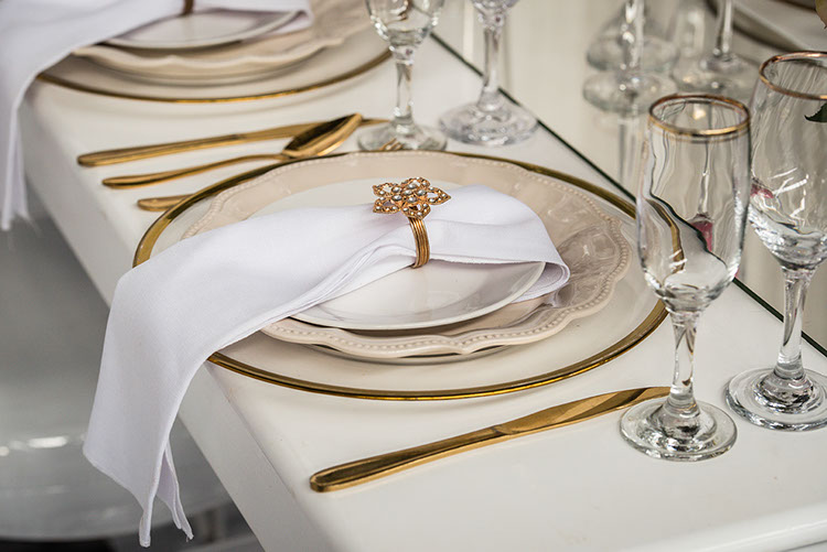 Der Platzteller auf der Hochzeitstafel dient nicht nur als Eyecatcher, sondern sorgt auch für eine optische Verbindung zwischen Tischdeko und Essgeschirr. Gleichzeitig hat der Teller natürlich einen praktischen Aspekt, jeder Hochzeitsgast weiß, welcher Platz für ihn vorgesehen ist. Sie sind auf der Suche nach „den Platztellern“, die perfekt zu Tafeldekoration ihrer Hochzeit passen sollen, werfen Sie einen Blick in unser facettenreiches Angebot. Wir führen Platzteller unterschiedlichster Stilrichtungen, die Sie zu attraktiven Preisen mieten können. Wir haben für jeden Bedarf die richtige Lösung. Bei uns können Sie ihre komplette Hochzeitsdeko zu attraktiven Preisen mieten. Von Chiavari -Stühlen über Kristall-Weingläser zum schwarzen Besteck, unser Hochzeitsdeko -Verleih lieft alle Accessoires, Dekoartikel und Mobiliar, dass Sie für die Gestaltung einer unvergesslichen freien Trauung benötigen. Werfen Sie einen Blick in unseren digitalen Katalog oder besuchen Sie gleich unseren Showroom, um ein Gefühl für unseren Stil und die Qualität unserer Waren zu bekommen. Mieten Sie unsere Platzteller für eine unvergessliche Märchenhochzeit. Bei uns Platzteller mit Goldrand mieten Hochzeitsdeko Verleih in Bielefeld.