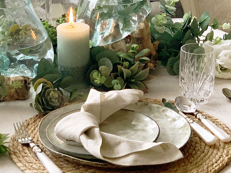 Platzteller und Serviettenringe für die einladende Tischdekoration