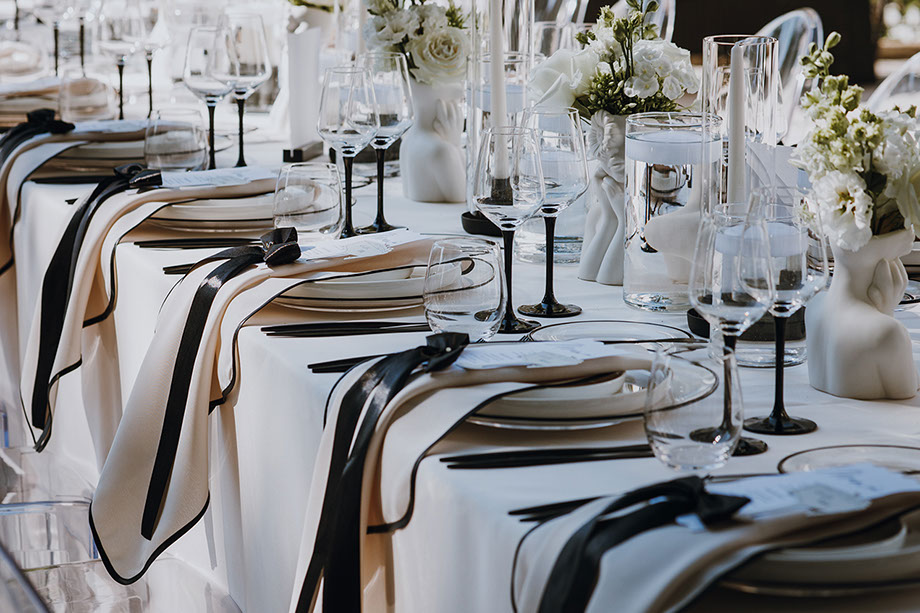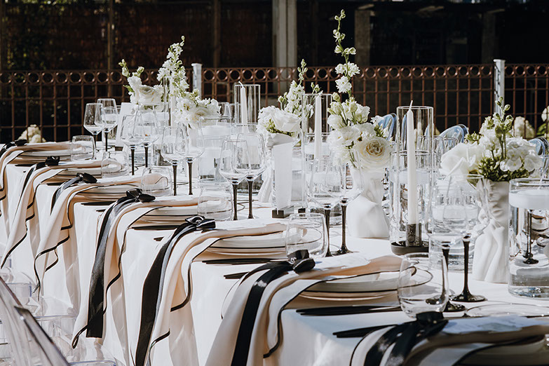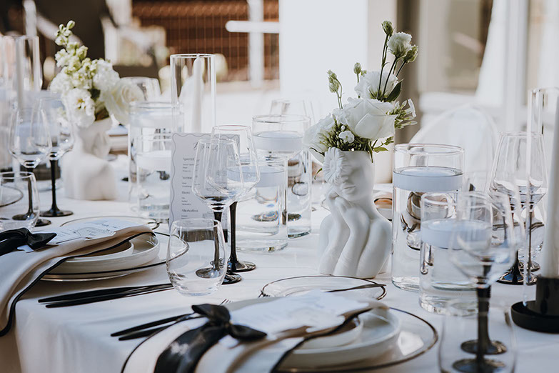 Unter einer stilvolle Hochzeit verstehen wir darum ein Fest, bei dem Tradition, Moderne und individuelle Charakter in harmonischem Einklang stehen. Denn eine Hochzeit ist ein traditioneller Anlass und ein gesellschaftliches Ritual, an das bestimmte Erwartungen geknüpft sind. Berücksichtigen Sie diese bei Ihren Vorbereitungen und verleihen Sie Ihrem Fest zugleich auf charmante Art und Weise eine ganz persönliche Note. Denn Ihre Hochzeit ist Ihr Tag, Sie allein entscheiden, wie dieser gestaltet werden soll. Bei uns weiße Servietten mieten - Stoffservietten aus 100 % Baumwolle.