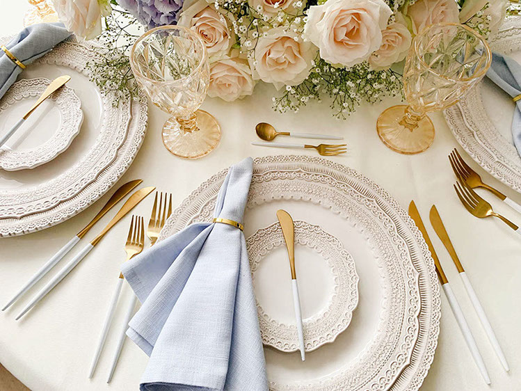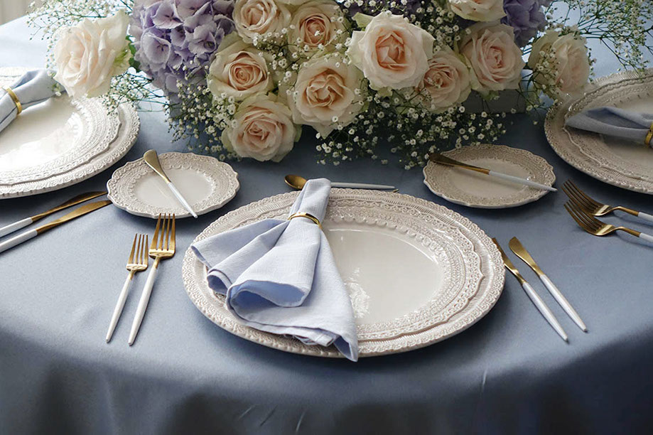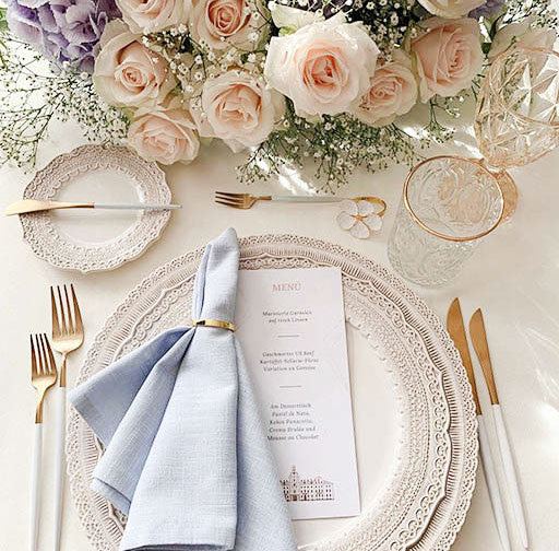 Wissenswert: Neben Platztellern können Sie bei uns auch das dazu passenden Essbesteck und die Gläser mieten, um ihre Hochzeitstafel optisch perfekt aufeinander abgestimmt zu gestalten.