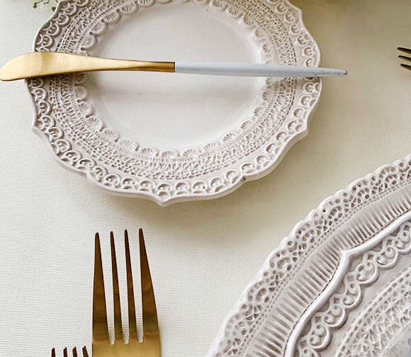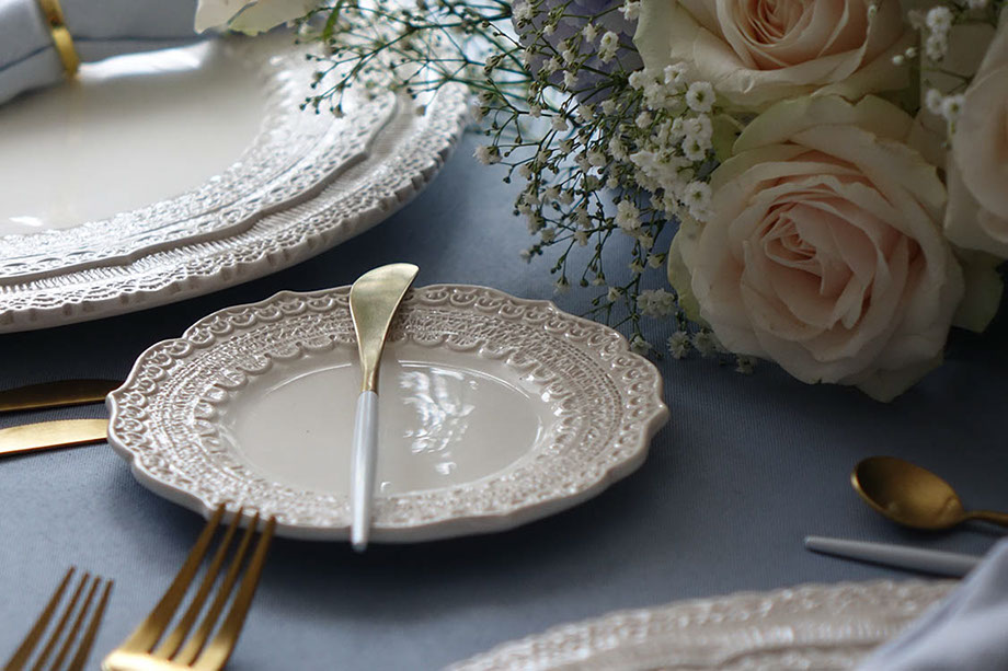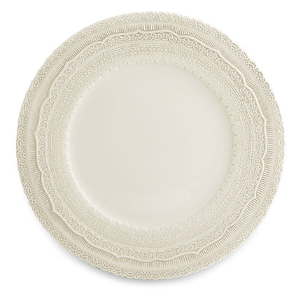 Der Platzteller auf der Hochzeitstafel dient nicht nur als Eyecatcher, sondern sorgt auch für eine optische Verbindung zwischen Tischdeko und Essgeschirr. Gleichzeitig hat der Teller natürlich einen praktischen Aspekt, jeder Hochzeitsgast weiß, welcher Platz für ihn vorgesehen ist. Sie sind auf der Suche nach „den Platztellern“, die perfekt zu Tafeldekoration ihrer Hochzeit passen sollen, werfen Sie einen Blick in unser facettenreiches Angebot. Wir führen Platzteller unterschiedlichster Stilrichtungen, die Sie zu attraktiven Preisen mieten können. Wir haben für jeden Bedarf die richtige Lösung. Bei uns können Sie ihre komplette Hochzeitsdeko zu attraktiven Preisen mieten. Von Chiavari -Stühlen über Kristall-Weingläser zum schwarzen Besteck, unser Hochzeitsdeko -Verleih lieft alle Accessoires, Dekoartikel und Mobiliar, dass Sie für die Gestaltung einer unvergesslichen freien Trauung benötigen. Werfen Sie einen Blick in unseren digitalen Katalog oder besuchen Sie gleich unseren Showroom, um ein Gefühl für unseren Stil und die Qualität unserer Waren zu bekommen. Mieten Sie unsere Platzteller für eine unvergessliche Märchenhochzeit.Speiseteller mieten Cappuccino LACE Porzellan