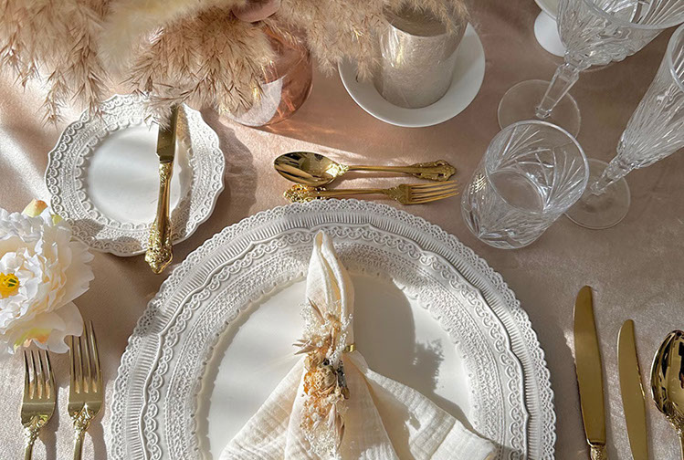 Platzteller und Serviettenringe für die einladende Tischdekoration