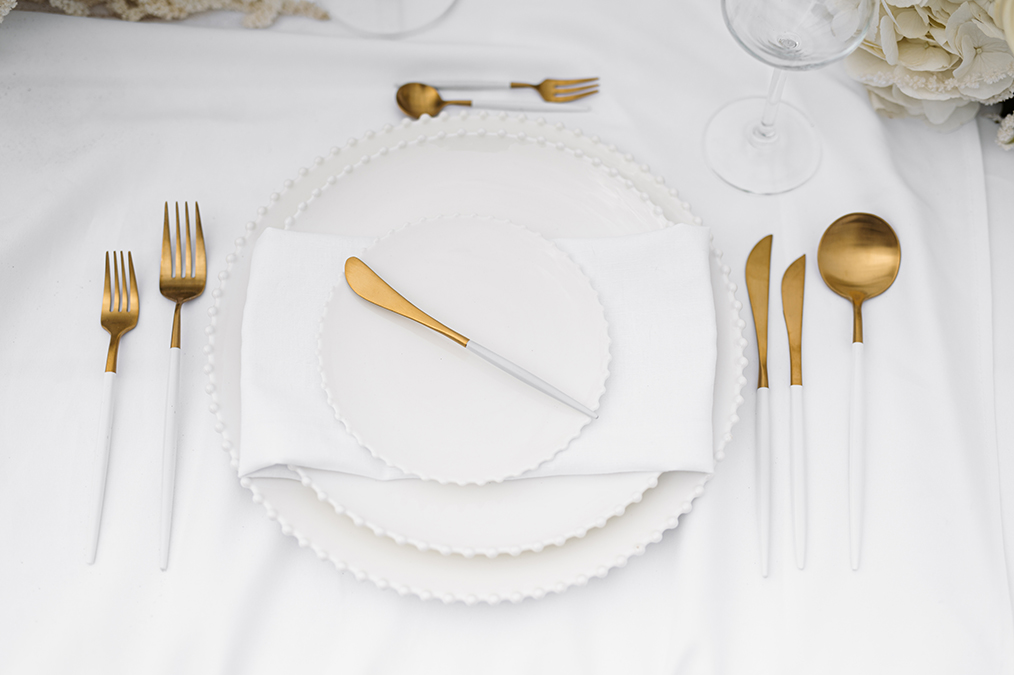 Wissenswert: Neben Platztellern können Sie bei uns auch das dazu passenden Essbesteck und die Gläser mieten, um ihre Hochzeitstafel optisch perfekt aufeinander abgestimmt zu gestalten.