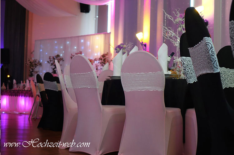 Für die Hochzeitsdekoration sind Stuhl Hussen eine echte Aufwertung, denn Sie damit werden alle Stühle an der Hochzeitstafel in ein einheitliches und festliches Gewand verpackt. Weiße Stuhlhussen können mit duftigen Stoffen dekoriert und somit der Farbe der Hochzeitsdeko angepasst werden. Mit Stuhlhussen wird dem Festsaal ein besonders feierliches Ambiente verliehen. Wie Sie auf meiner Webseite sehen gibt es unzählige Möglichkeiten die Stuhl Hussen in Ihrer Lieblingsfarbe zu dekorieren. Mit Tüll oder seidigen Stoffen, Blumen, schönen Knoten oder Deko Materialien wie Herzen oder weißen Tauben versehen werden einfache weiße Stuhlhussen dem Anlass entsprechend elegant herausgeputzt. Mieten Sie unsere Stuhlhusse für eine Märchenhochzeit. Unsere Mieten Sie unsere Stuhlhusse für eine unvergessliche Märchenhochzeit. Unsere Hochzeitsdekoration mieten Stuhlhusse verleihen in Bielefeld.