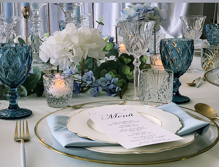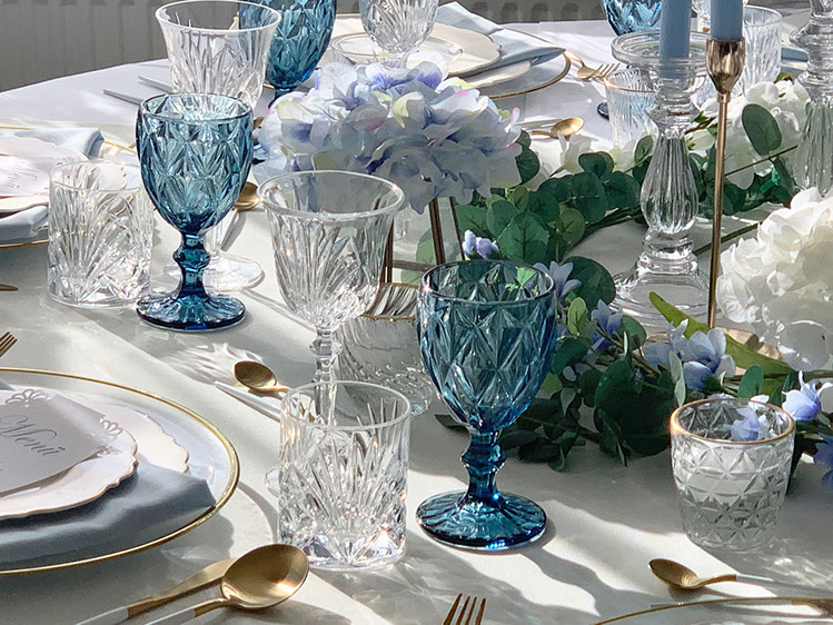 Sie suchen nach extravaganten Weingläsern für ihre Hochzeitsfeier, dann sind unsere blauen Gläser genau das Richtige für Sie. Formschöne Gläser mit einem extravaganten Flair in einem intensives Blau-Grau, die perfekten Eyecatcher für eine märchenhaft schöne Hochzeitstafel.