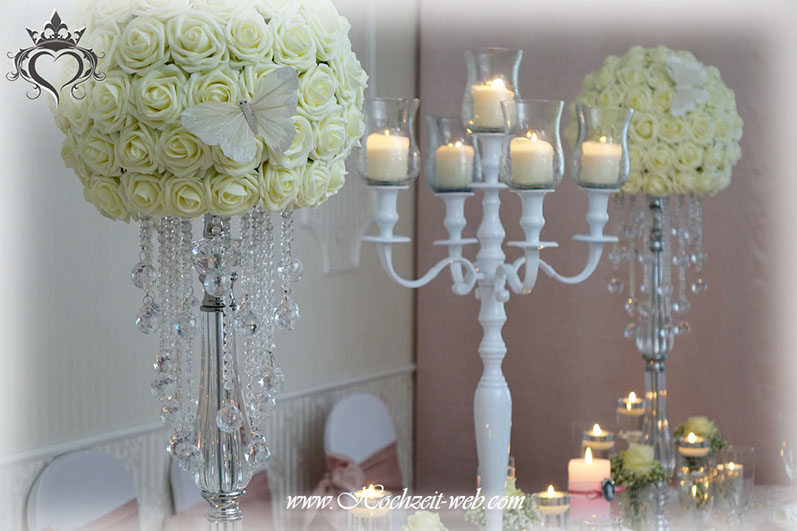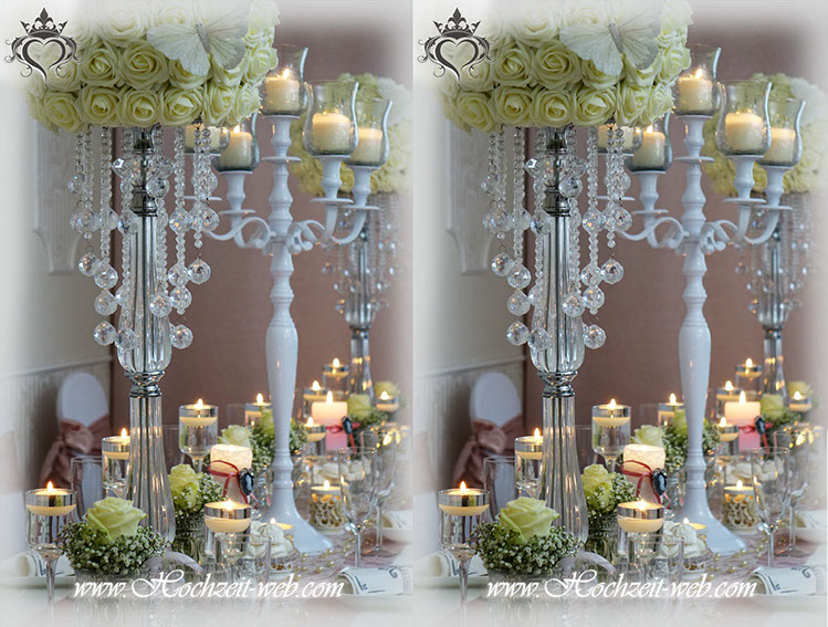 -Kristall Kerzenständer: Gewaltig, pompös, verspielt, luxuriös und extravagant, besser lassen sich diese Kerzenständer nicht beschreiben. Sie sind auf jeden Fall eine gute Wahl für die Hochzeitspaare, die eine unvergessliche Märchenhochzeit planen.