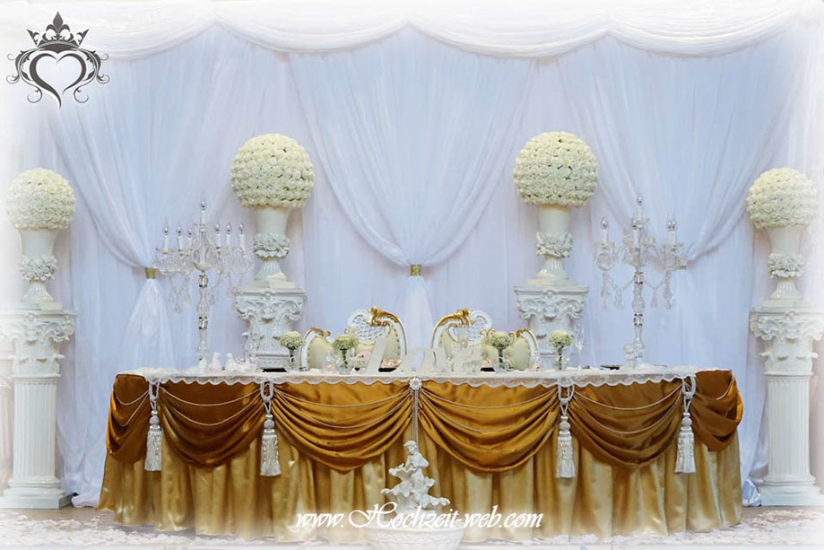 Für Ihre Hochzeit, Swadba, Wedding oder ein Event mit Porzellan Vasen. Harmonische Kombination mit Glas Kerzenständer und Teelichter oder Teelichterhalter. Auf dem Foto sehen Sie, wie wir auf eine Hochzeit die Dekoration mit Thema “Venedig” umgesetzt haben. Die weiße Porzellan Vasen zusammen mit goldene hochwertigen Stoffen und Spiegel platte kombiniert. Für eckige und lange Tisch-reihen ist das perfekte Dekoration. Natürlich können wie die Porzellan Vasen auch mit den anderen Farben kombinieren. Ob das rote oder grüne Tischläufer sein müssen, die weiße Vasen passen einfach perfekt.