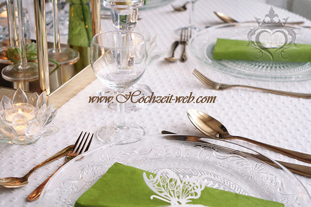 Platzteller und Serviettenringe und Besteck in Gold oder Roségold werten die Hochzeitstische und die Tische für jedes andere Event auf. Zusammen mit Vasen, Kerzenständern, Kristallständern und Tischwäsche sowie Stoffen, Blumen und Kerzen machen Platzteller und Serviettenringe die Tischdekoration zu einem Augenschmaus. Jeder wünscht sich für die Hochzeit eine elegante und nicht alltägliche Tischdeko. Leider fehlt es mitunter an der Kreativität und der Zeit. Ich bietet Ihnen meine Unterstützung an, indem ich Ihnen helfe eine bezaubernde Tischdeko für die Hochzeit zusammenzustellen. Vielleicht finden Sie schon Anregungen für die Dekoration anhand der Bilder auf der Webseite. Aber auch in meiner Ausstellung und auf Bildern und Videos kann ich Ihnen verschiedene Möglichkeiten präsentieren.