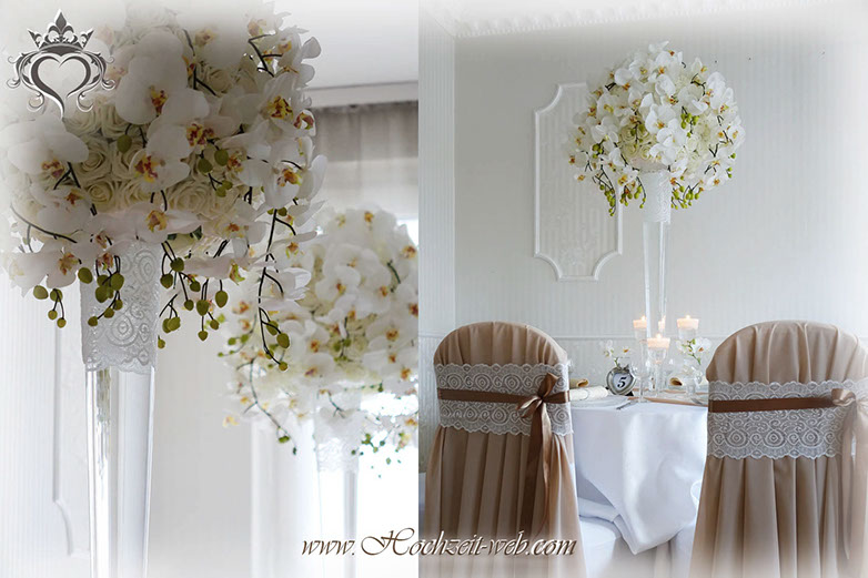 Jede Hochzeit ist immer ein besonderes eigenartiges Ereignis. Wir bieten Ihnen verschiedene Varianten von Tischdekoration, von elegant bis zur extravagant, von schlicht und edel bis königlich pompös. Sie haben auch die Möglichkeit die Tischdekoration so wie Glasvasen oder Porzellan Vasen zu mieten. Allerdings können wir die Vasen nicht mit der Post zusenden, die müssen abgeholt werden. Außer Vasen verleihen wir auch die Kerzenständer, Kerzenleuchter und weiße Stuhlhusse. Die Kerzenständer und Stuhlhusse können wir gerne mit der Post senden Rufen Sie uns an! Mieten Sie unsere Glasvasen für eine unvergessliche Märchenhochzeit.