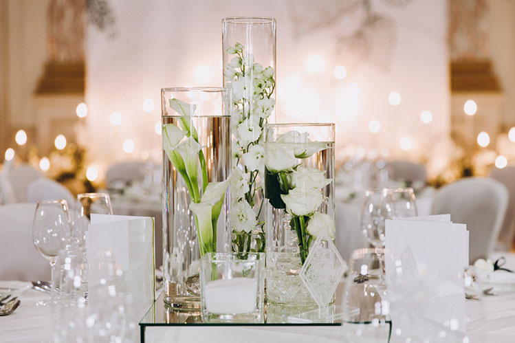 Bei uns können Sie Glasvasen mieten für Ihre romantische Hochzeit, Blumenvasen für Ihren Event bei uns mieten, wir haben Vasen in verschiedenen Größen und Designs, sodass Sie bestimmt die richtige Vase für Ihre Hochzeit finden, extravagante oder klassische Vasen bei uns mieten - wir haben eine große Auswahl für jeden Anlass.