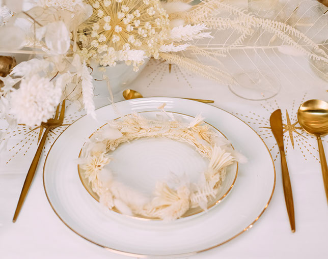 Von Chiavari Stühlen über Kristall- Weingläser zum schwarzen Besteck, unser Hochzeitsdekoration Verleih lieft alle Accessoires, Dekoartikel und Mobiliar, dass Sie für die Gestaltung einer unvergesslichen Hochzeit benötigen. Werfen Sie einen Blick in unseren digitalen Katalog oder besuchen Sie gleich nach Terminvereinbarung unseren Showroom, um ein Gefühl für unseren Stil und die Qualität unserer Waren zu bekommen. Mieten Sie bei uns goldenes Besteck in "Gold Eleganz" für eine unvergessliche Märchenhochzeit.
