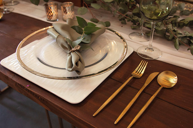 Goldenes Besteck für Hochzeitsfeier bei uns mieten.