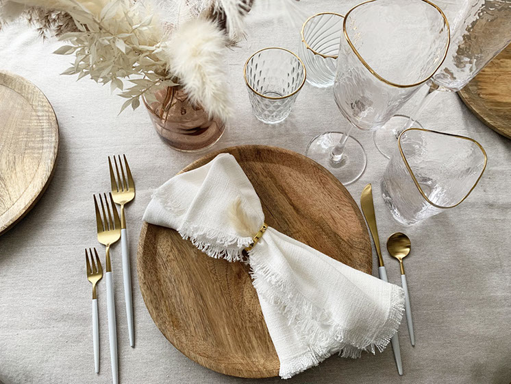 Platzteller und Serviettenringe für die einladende Tischdekoration