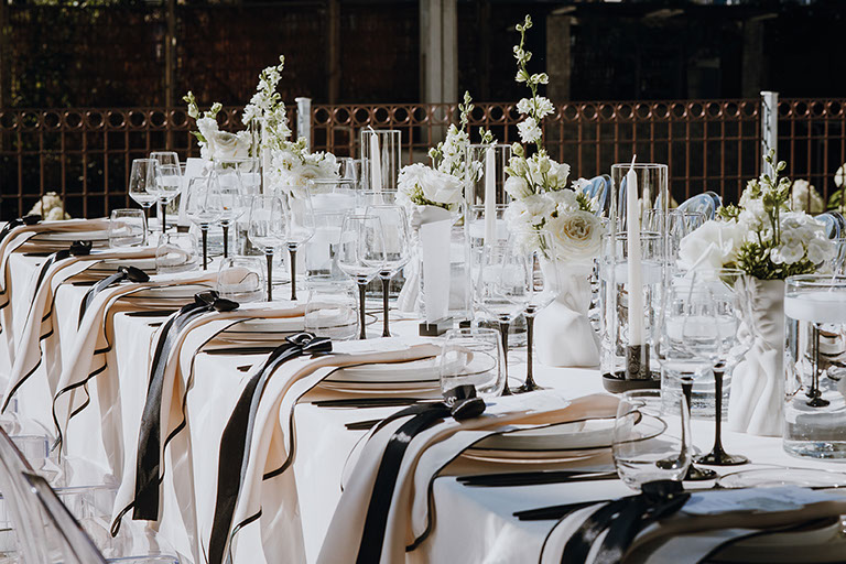 -Schwarz: Auffällige Kerzenständer in Schwarz im typischen Rokoko-Stil sorgen für einen unvergleichlichen Hingucker auf jeder Hochzeitstafel.