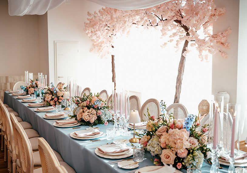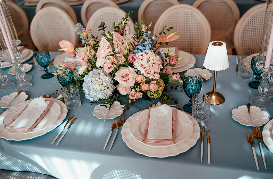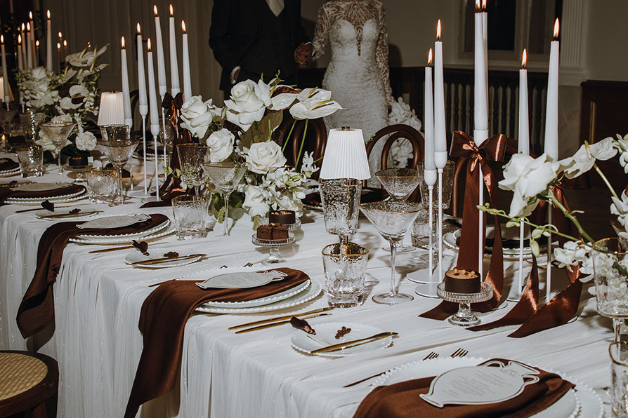 - Harmonieren mit weißen Blumen, Kerzen & feiner Tischwäsche
