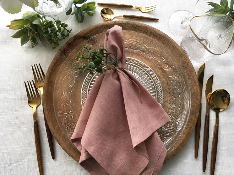 Wir versenden die Servietten deutschlandweit, sodass Sie auch bei Ihrer Hochzeit den gewünschten Stil und den guten Geschmack genießen können. Mit unseren Servietten verleihen Sie Ihrem Tisch eine exklusive Eleganz und werden dabei noch Budget schonender sein, da Sie die Servietten mieten können. Probieren Sie es aus und mieten Sie unsere Leinen Servietten in Bielefeld! Altrosa Leinen Servietten mieten Stoffservietten aus 100 % Leinenstoff.