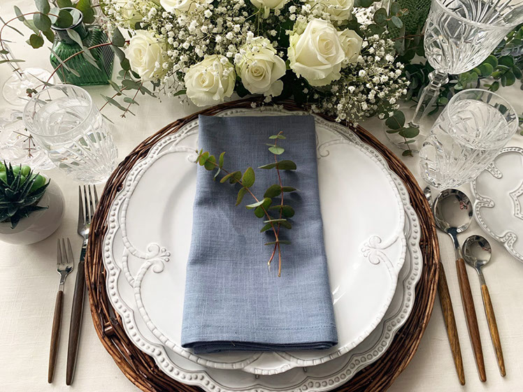 Wir versenden die Servietten deutschlandweit, sodass Sie auch bei Ihrer Hochzeit den gewünschten Stil und den guten Geschmack genießen können. Mit unseren Servietten verleihen Sie Ihrem Tisch eine exklusive Eleganz und werden dabei noch Budget schonender sein, da Sie die Servietten mieten können. Probieren Sie es aus und mieten Sie unsere Leinen Servietten in Bielefeld! Blau Leinen Servietten mieten Stoffservietten aus 100 % Leinenstoff.