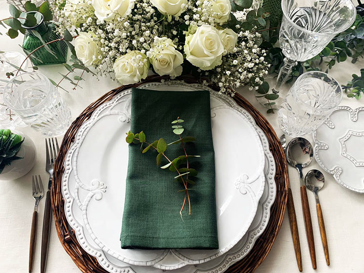 Wir versenden die Servietten deutschlandweit, sodass Sie auch bei Ihrer Hochzeit den gewünschten Stil und den guten Geschmack genießen können. Mit unseren Servietten verleihen Sie Ihrem Tisch eine exklusive Eleganz und werden dabei noch Budget schonender sein, da Sie die Servietten mieten können. Probieren Sie es aus und mieten Sie unsere Leinen Servietten in Bielefeld! Grün Leinen Servietten mieten Stoffservietten aus 100 % Leinenstoff.