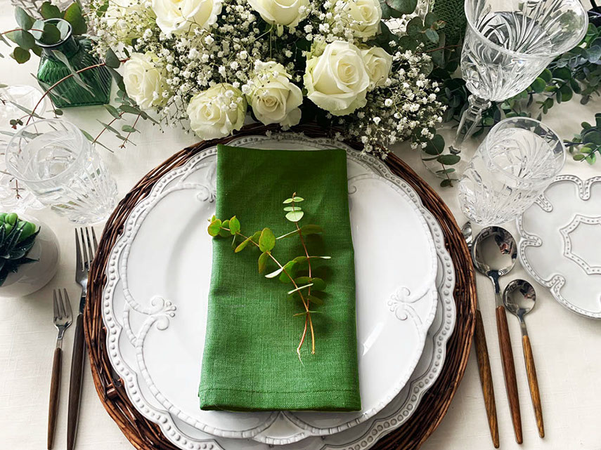 Unter einer stilvolle Hochzeit verstehen wir darum ein Fest, bei dem Tradition, Moderne und individuelle Charakter in harmonischem Einklang stehen. Denn eine Hochzeit ist ein traditioneller Anlass und ein gesellschaftliches Ritual, an das bestimmte Erwartungen geknüpft sind. Berücksichtigen Sie diese bei Ihren Vorbereitungen und verleihen Sie Ihrem Fest zugleich auf charmante Art und Weise eine ganz persönliche Note. Denn Ihre Hochzeit ist Ihr Tag, Sie allein entscheiden, wie dieser gestaltet werden soll. Bei uns Leinen Servietten mieten - Stoffservietten aus 100 % Leinen in verschiedenen Farben.