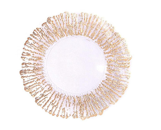 Glasplatzteller mit goldenen Perlen
