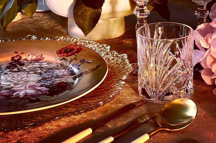 Glasplatzteller mit Rosegoldrand
