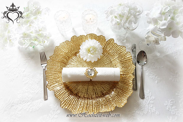 Der Platzteller auf der Hochzeitstafel dient nicht nur als Eyecatcher, sondern sorgt auch für eine optische Verbindung zwischen Tischdeko und Essgeschirr. Gleichzeitig hat der Teller natürlich einen praktischen Aspekt, jeder Hochzeitsgast weiß, welcher Platz für ihn vorgesehen ist. Sie sind auf der Suche nach „den Platztellern“, die perfekt zu Tafeldekoration ihrer Hochzeit passen sollen, werfen Sie einen Blick in unser facettenreiches Angebot. Wir führen Platzteller unterschiedlichster Stilrichtungen, die Sie zu attraktiven Preisen mieten können. Wir haben für jeden Bedarf die richtige Lösung. Bei uns können Sie ihre komplette Hochzeitsdeko zu attraktiven Preisen mieten. Von Chiavari -Stühlen über Kristall-Weingläser zum schwarzen Besteck, unser Hochzeitsdeko -Verleih lieft alle Accessoires, Dekoartikel und Mobiliar, dass Sie für die Gestaltung einer unvergesslichen freien Trauung benötigen. Werfen Sie einen Blick in unseren digitalen Katalog oder besuchen Sie gleich unseren Showroom, um ein Gefühl für unseren Stil und die Qualität unserer Waren zu bekommen. Mieten Sie unsere Platzteller für eine unvergessliche Märchenhochzeit.Platzteller in Gold mieten für Ihre Hochzeit oder Event. Bei uns goldene Platzteller mieten Gold Verleih Bielefeld.