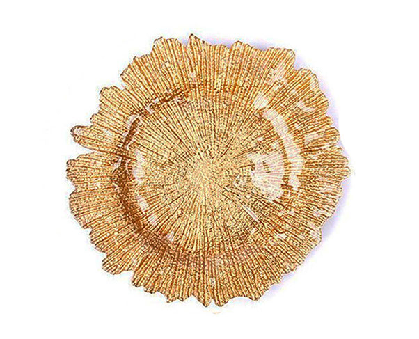Unsere Glasplatzteller mit goldenen Perlen zeigen ein verspieltes und elegantes Design. Der warme Farbton der Goldperlen sorgt für ein angenehmes Flair, bei dem sich ihre Hochzeitsgäste willkommen fühlen werden.