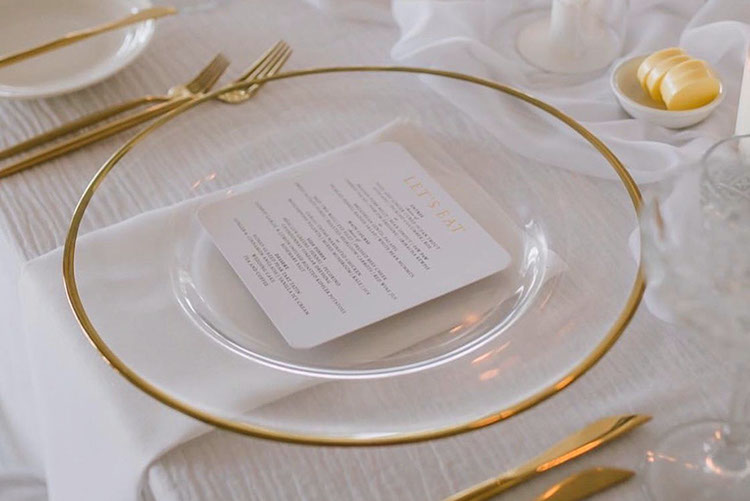 Wissenswert: Neben Platztellern können Sie bei uns auch das dazu passenden Essbesteck und die Gläser mieten, um ihre Hochzeitstafel optisch perfekt aufeinander abgestimmt zu gestalten.