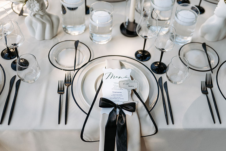 Unter einer stilvolle Hochzeit verstehen wir darum ein Fest, bei dem Tradition, Moderne und individuelle Charakter in harmonischem Einklang stehen. Denn eine Hochzeit ist ein traditioneller Anlass und ein gesellschaftliches Ritual, an das bestimmte Erwartungen geknüpft sind. Berücksichtigen Sie diese bei Ihren Vorbereitungen und verleihen Sie Ihrem Fest zugleich auf charmante Art und Weise eine ganz persönliche Note. Denn Ihre Hochzeit ist Ihr Tag, Sie allein entscheiden, wie dieser gestaltet werden soll. Bei uns weiße Servietten mieten - Stoffservietten aus 100 % Baumwolle.