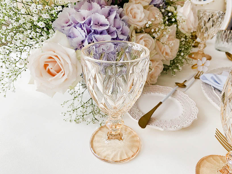 Glasplatzteller im klassischen Design mit auffälliger Umrandung in Rosegold – diese Teller sind garantiert das Highlight auf jeder Hochzeitstafel.