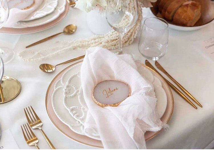 Wissenswert: Neben Platztellern können Sie bei uns auch das dazu passenden Essbesteck und die Gläser mieten, um ihre Hochzeitstafel optisch perfekt aufeinander abgestimmt zu gestalten.