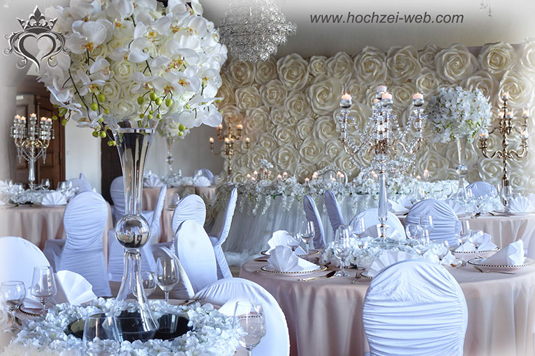 Jede Hochzeit ist immer ein besonderes eigenartiges Ereignis. Wir bieten Ihnen verschiedene Varianten von Tischdekoration, von elegant bis zur extravagant, von schlicht und edel bis königlich pompös. Sie haben auch die Möglichkeit die Tischdekoration so wie Glasvasen oder Porzellan Vasen zu mieten. Allerdings können wir die Vasen nicht mit der Post zusenden, die müssen abgeholt werden. Außer Vasen verleihen wir auch die Kerzenständer, Kerzenleuchter und weiße Stuhlhusse. Die Kerzenständer und Stuhlhusse können wir gerne mit der Post senden Rufen Sie uns an! Mieten Sie unsere Spiegelplatte für eine unvergessliche Märchenhochzeit oder Event.