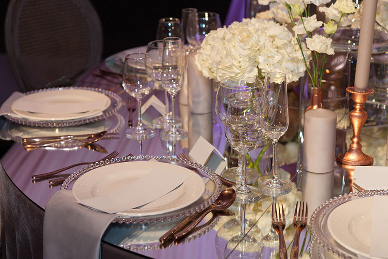 Wissenswert: Neben Platztellern können Sie bei uns auch das dazu passenden Essbesteck und die Gläser mieten, um ihre Hochzeitstafel optisch perfekt aufeinander abgestimmt zu gestalten.