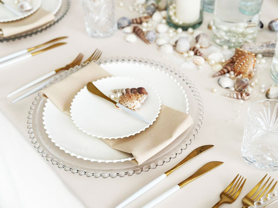 Der Platzteller auf der Hochzeitstafel dient nicht nur als Eyecatcher, sondern sorgt auch für eine optische Verbindung zwischen Tischdeko und Essgeschirr. Gleichzeitig hat der Teller natürlich einen praktischen Aspekt, jeder Hochzeitsgast weiß, welcher Platz für ihn vorgesehen ist. Sie sind auf der Suche nach „den Platztellern“, die perfekt zu Tafeldekoration ihrer Hochzeit passen sollen, werfen Sie einen Blick in unser facettenreiches Angebot. Wir führen Platzteller unterschiedlichster Stilrichtungen, die Sie zu attraktiven Preisen mieten können. Wir haben für jeden Bedarf die richtige Lösung. Bei uns können Sie ihre komplette Hochzeitsdeko zu attraktiven Preisen mieten. Von Chiavari -Stühlen über Kristall-Weingläser zum schwarzen Besteck, unser Hochzeitsdeko -Verleih lieft alle Accessoires, Dekoartikel und Mobiliar, dass Sie für die Gestaltung einer unvergesslichen freien Trauung benötigen. Werfen Sie einen Blick in unseren digitalen Katalog oder besuchen Sie gleich unseren Showroom, um ein Gefühl für unseren Stil und die Qualität unserer Waren zu bekommen. Mieten Sie unsere Platzteller für eine unvergessliche Märchenhochzeit. Hochzeitsdeko mieten Platzteller Perlen Verleih.